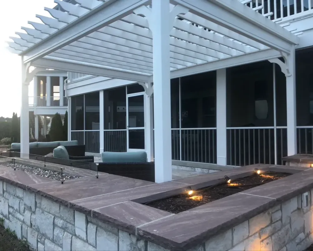 - Pergolas and pavilions built from wood or vinyl to provide shade and structure