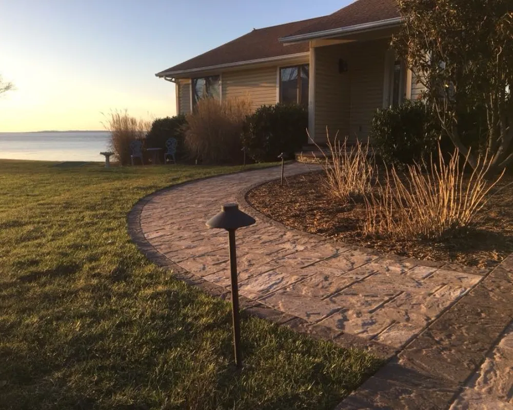 This project in Stevensville, Maryland focused on transforming the home’s driveway and access walkways into a more durable, visually defined, and welcoming entry. The existing layout lacked structure and nighttime visibility, especially important for a waterfront-adjacent property.