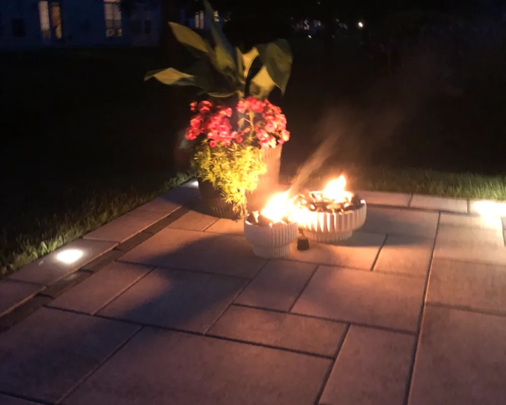 - Landscape Lighting: Recessed and low-voltage accent lighting integrated along patio edges and wall features
